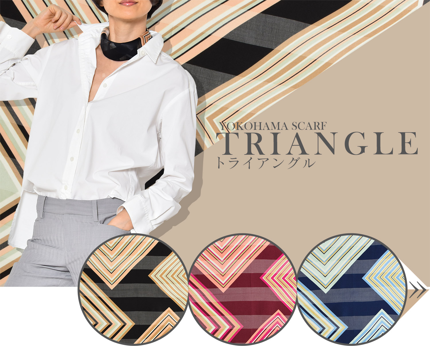 弊社オンラインブティックでは他にも幾何学柄のスカーフを紹介しています。